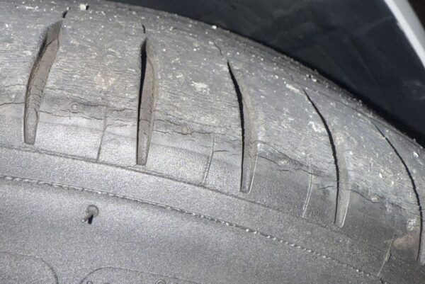 私の愛車であるNCロードスターも、現在装着しているタイヤが5年目に突入しました。溝はまだ4mmほど残っていますが、側面にうっすらと細かいひび割れが見られ、触ってみると新品のような柔らかさはありません。