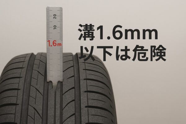 溝が1.6mm以下 → 法律違反、即交換が必要